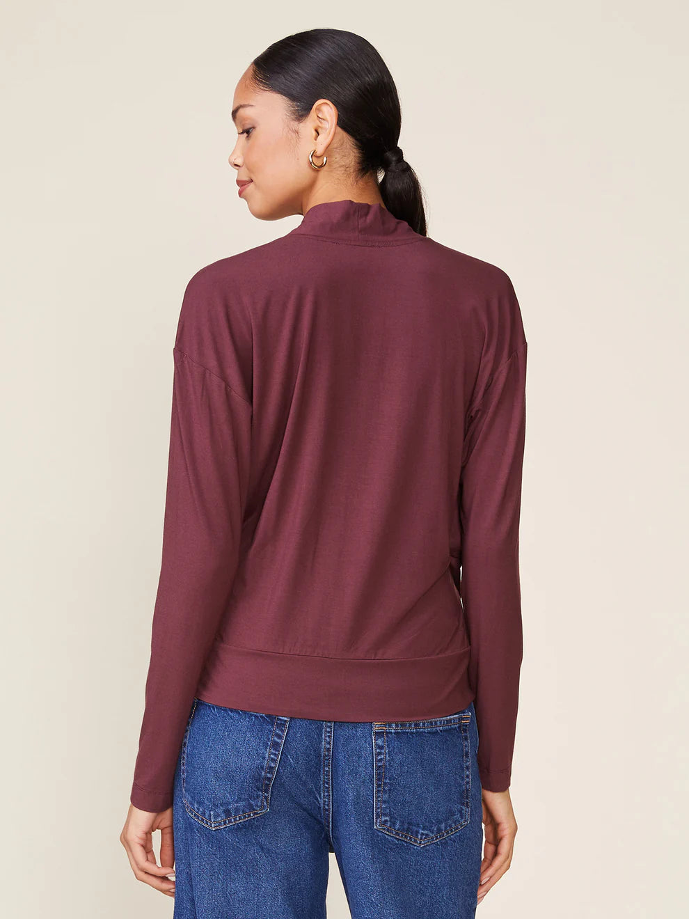 This long sleeve faux wrap knit top is crafted in our signature Legendary modal jersey. A classic polished piece with a baby snap closure and banded bottom is a wear on repeat staple. Tuck it in to denim and belt it for a stunning classically chic look or pair it back to the Live In It Pant for luxe lounging. This top is both sexy and stylish with timeless appeal.