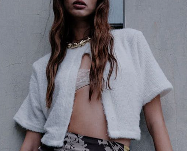 Introducing the THEO Carme Plush Lace Short Sleeve Cardigan. This luxurious cardigan is designed with soft plush and delicate lace, offering both comfort and elegance. Its short sleeves provide a modern twist and its versatile design makes it a perfect addition to any wardrobe. Elevate your style with THEO.