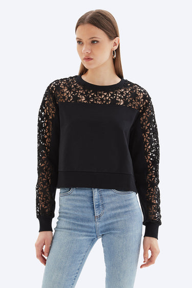 CHRLDR Eyelet Star Insert Straight Round Neck Sweatshirt