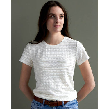 Elevate your wardrobe with our Scallop Tee. Featuring a unique scalloped texture, this tee adds a touch of sophistication to any outfit. Made with high-quality fabric, it offers both comfort and style. Upgrade your basics today.