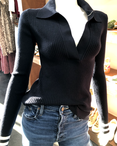 Revamp your casual look with this polo sweater that combines retro athletic style with everyday comfort. Made from a soft organic cotton and cashmere blend, it features a classic point collar and V-neckline for a laid-back yet polished vibe. The relaxed fit is perfect for those off-duty days, easily pairing with your favorite jeans or shorts.