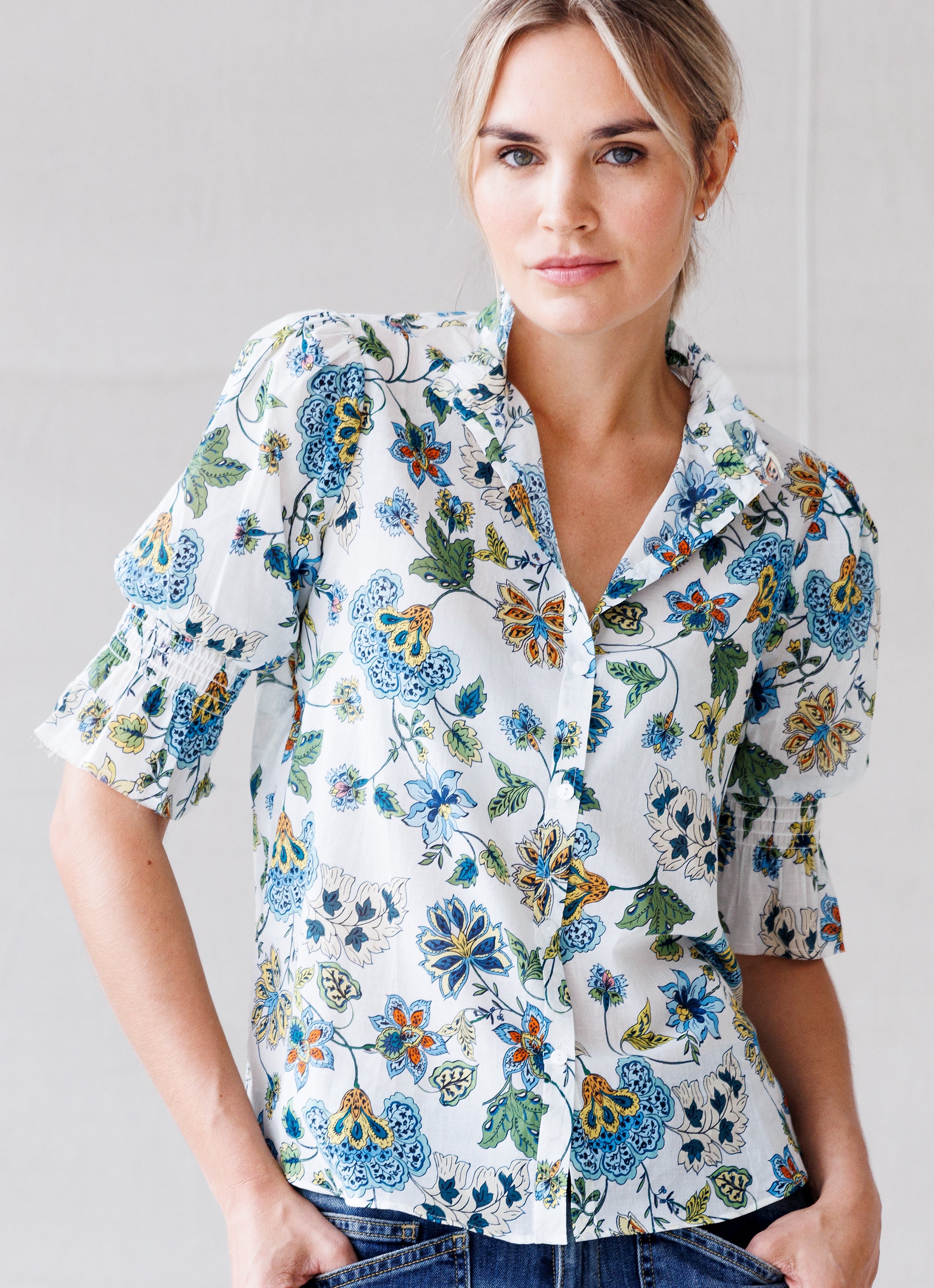 Unleash your inner fashionista with the GO SILK Go Hannah Shirt Printed! This quirky shirt features a unique print that will make you stand out in any crowd. Made with high quality silk, it's comfortable and stylish. Upgrade your wardrobe with this playful and trendy addition!