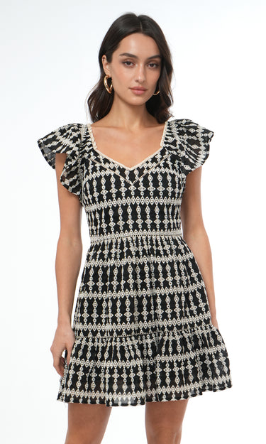 GREYLIN Katty Embroidery Eyelet Flutter Sleeve Mini Dress
