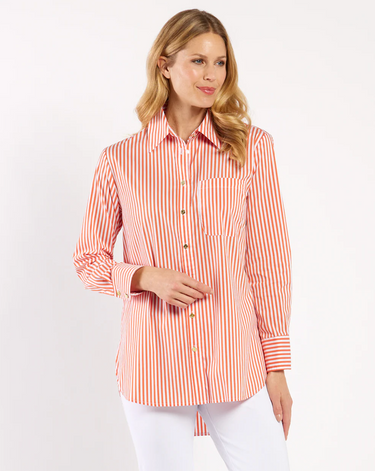Meet Kimber! Step into sophistication with this menswear-inspired dress shirt. With a generous fit and a classic shirttail hem, this tailored piece features our signature JC buttons and a more structured drape for comfort and polish. It is a new, must-have style for your wardrobe!