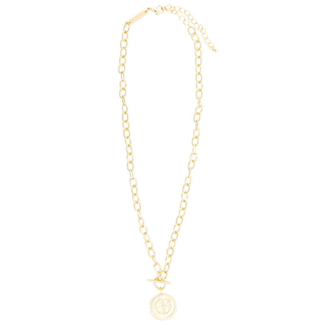The Monroe Necklace combines timeless charm with a bold, modern twist. Featuring a beautifully detailed coin pendant on a statement chain, this piece adds a touch of elegance and edge to any look. Perfect for wearing solo or layering with other favorites, the design makes it an eye-catching accessory that transitions effortlessly from casual to formal. Details, Length: 16" with 3" extender.