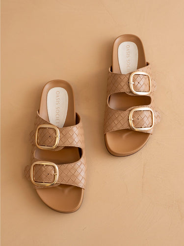 Oasis - The Desiree Almond Woven Slide with Oversizes Gold Buckles
