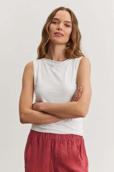 Introducing the VELVET Emilia Top, crafted with gauzy whisper novelty fabric for a luxurious and lightweight feel. This top combines comfort with style, making it perfect for any occasion. Upgrade your wardrobe with this must-have piece.